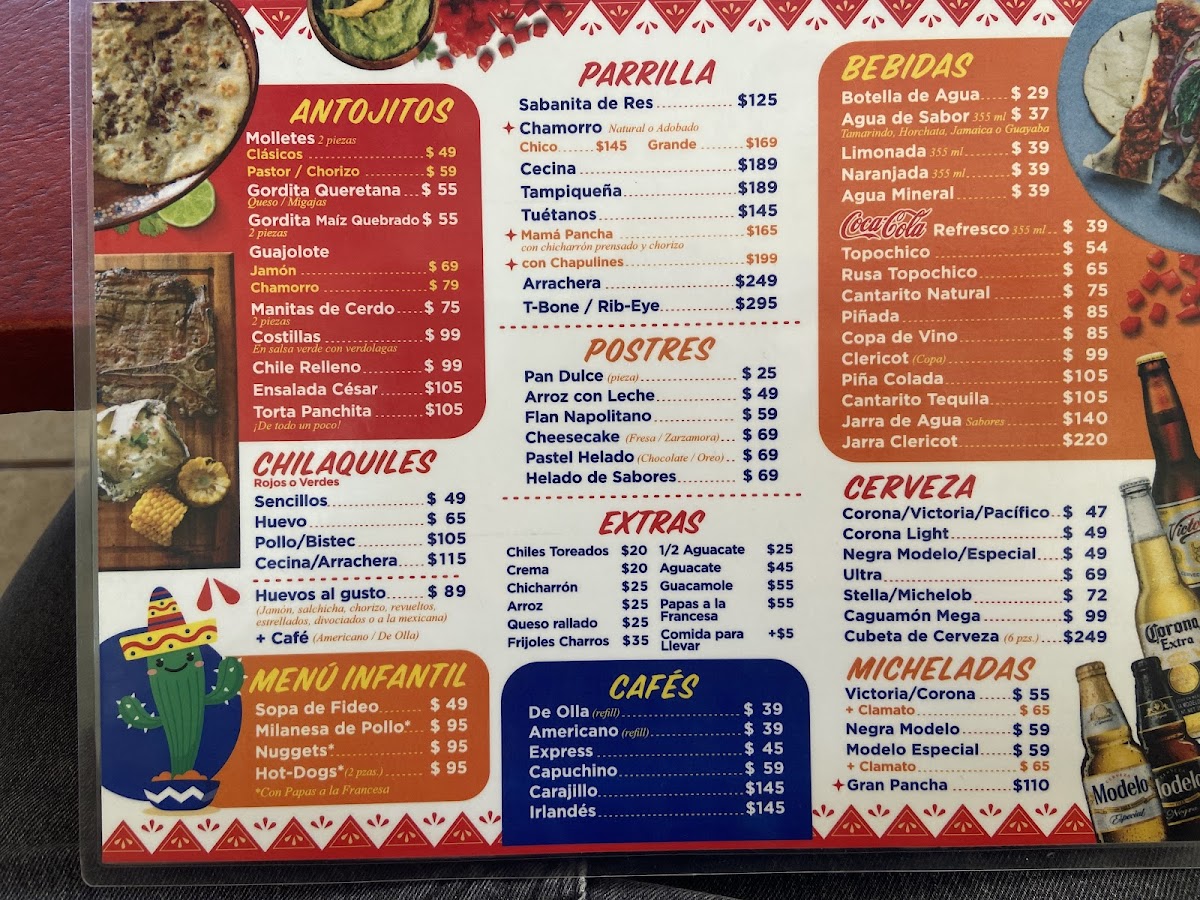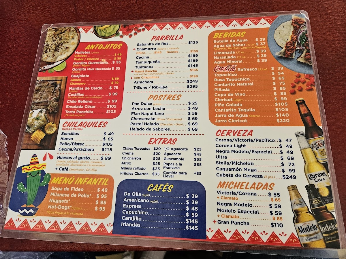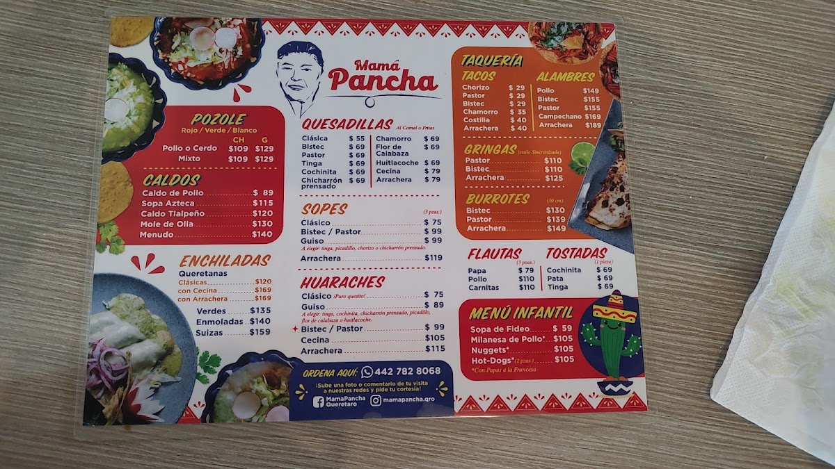 Introducing the menu of Mama Pancha, a delightful haven for Mexican cuisine located in Santiago de Queretaro. This bustling eatery provides a friendly atmosphere where families can enjoy a diverse range of traditional dishes sized generously to satisfy every appetite.